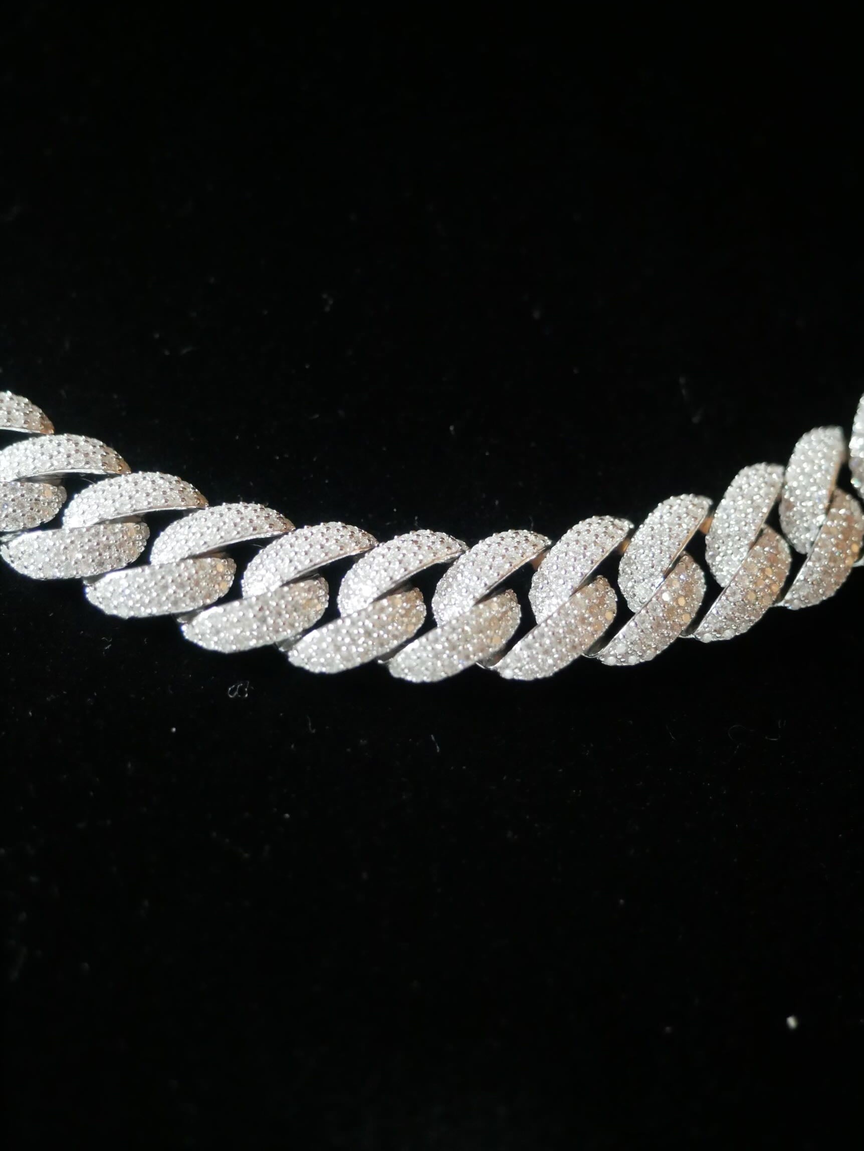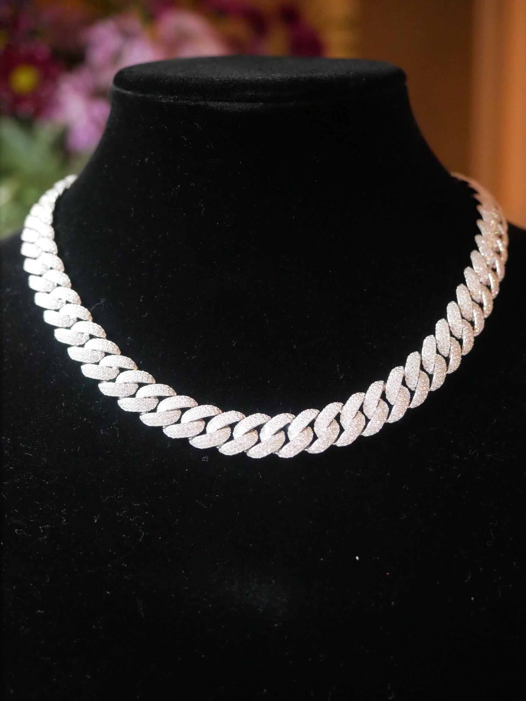 Crafted for those who move with confidence, this Miami Cuban link chain features meticulously handset stones on every link for maximum shine from every angle. Designed with a classic silhouette and a modern iced-out twist, it’s the ultimate flex piece — whether you're layering or rocking it solo.